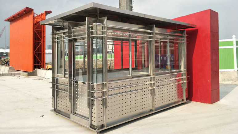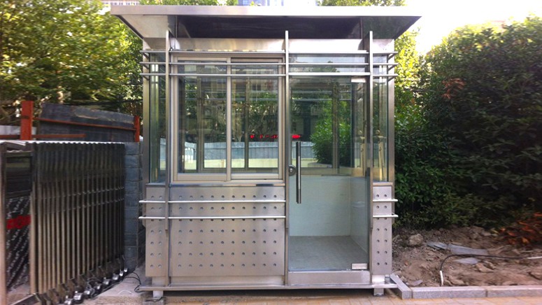 全部精選優(yōu)質(zhì)304不銹鋼板,久經(jīng)耐用美觀大方。焊接技術(shù)精湛,幾乎看不到焊點。所有出廠產(chǎn)品出現(xiàn)銹斑,5年內(nèi)免費維修!若出現(xiàn)水電滲漏情況,終身免費維修!上海想興出廠的山東曲阜犁鏵春秋售樓處不銹鋼保安崗亭,主要架構(gòu)為80*80*3mm熱鍍鋅管,外包1.2mm不銹鋼沖孔板板。