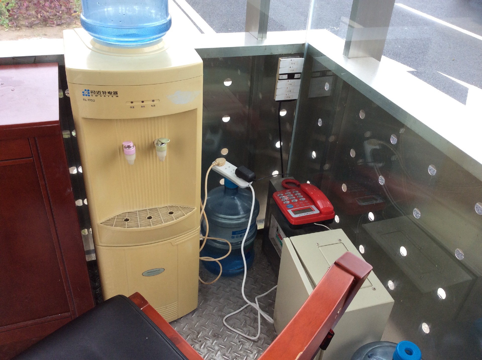 5、崗?fù)?nèi)壁:中間為方通架硅酸鈣板,用螺絲固定在龍骨上,內(nèi)外襯木板;