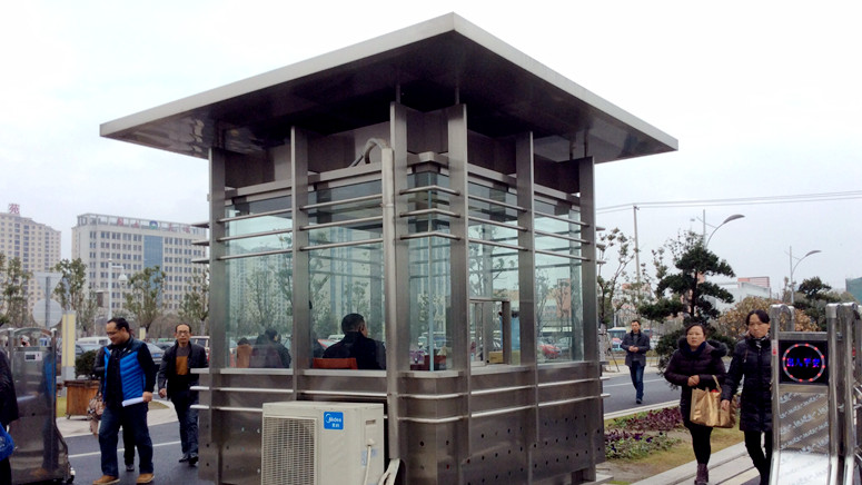 南通海門(mén)市政府不銹鋼保安崗?fù)?,全部精選優(yōu)質(zhì)304不銹鋼板,久經(jīng)耐用美觀大方。焊接技術(shù)精湛,幾乎看不到焊點(diǎn)。