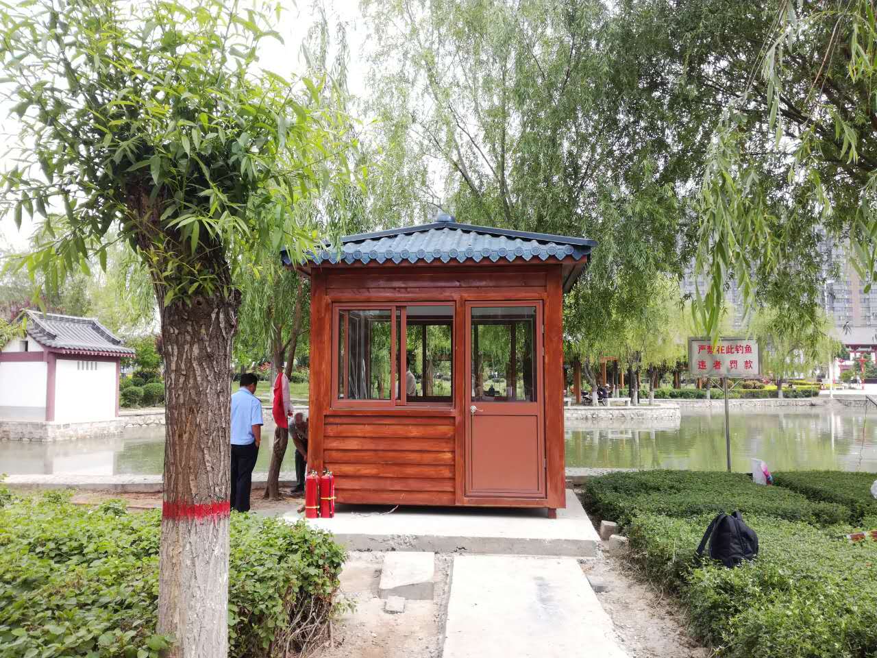 陜西渭南華山景區(qū)防腐木保安崗?fù)ふw設(shè)計(jì)古樸大氣韻味十足,頂部仿古式樹脂瓦層層折疊,內(nèi)飾簡(jiǎn)潔明亮功能齊全,使用更便捷,同時(shí)也為景區(qū)內(nèi)增添了一道別致的風(fēng)景。