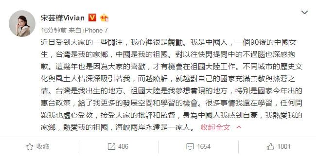 不過這為90后女生非常迅速地做出了回應(yīng)。她說:我是中國人,臺(tái)灣是故鄉(xiāng)。