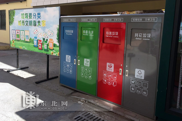 哈爾濱233個小區(qū)完成分類設(shè)施配置。東北網(wǎng)記者 孫英鑫 攝 2017年3月,國務(wù)院辦公廳《關(guān)于轉(zhuǎn)發(fā)國家發(fā)展改革委住房城鄉(xiāng)建設(shè)部生活垃圾分類制度實施方案的通知》指出,“2020年底前,要在直轄市、省會城市、計劃單列市和住房城鄉(xiāng)建設(shè)部等部門確定的第一批46個生活垃圾分類示范城市先行實施生活垃圾強制分類”。 哈爾濱城市人口550余萬人,日產(chǎn)生活垃圾4650噸,無害化處理率100%。作為全國首批開展生活垃圾分類的46個重點城市之一,哈爾濱把抓好垃圾分類工作作為一項推動生態(tài)文明建設(shè)的重要民生工程,強力推動各項工作落實。印發(fā)《哈爾濱市生活垃圾分類工作方案(試行)的通知》,將生活垃圾分為有害垃圾、可回收物、易腐垃圾和其他垃圾4個類別,通過開展教育引導(dǎo)工作,讓群眾認識到實行垃圾分類的重要性和必要性,培養(yǎng)良好習(xí)慣,共同改善城市生活環(huán)境。