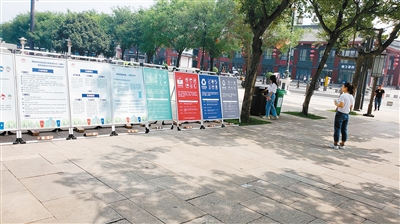 景區(qū)在廣場上設(shè)立了垃圾分類細(xì)則宣傳板。