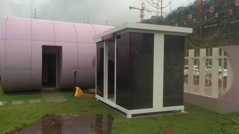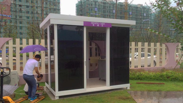 南京恒生制藥吸煙亭玻璃貼了專業(yè)汽車防曬膜,這樣在一定程度上減少了日曬。吸煙亭放在草地上,安裝的過程中有些難度,如果您的安裝現(xiàn)場類似,吸煙亭廠家給出建議是吊裝,或者在草地上墊上鋼板。