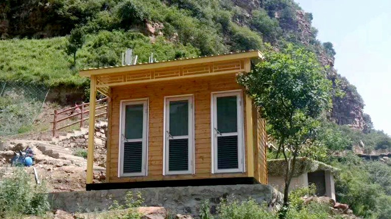 ?為了使東太行景區(qū)可拆裝式無水打包移動廁所更加完美的融入景區(qū)的特色,一般都會選擇防腐木,更重要的一點是防腐木沒裝好之前是一片一片的,更加適合拆裝。排污方式根據(jù)東太行景區(qū)現(xiàn)場的情況選擇無水打包方式。