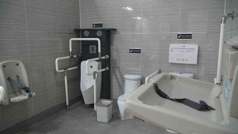 新疆移動(dòng)廁所內(nèi)部增設(shè)第三位衛(wèi)生間,為帶兒童家長(zhǎng)如廁更換紙尿褲等提供了極大的便利,整體按照無(wú)障礙衛(wèi)生間設(shè)計(jì)標(biāo)準(zhǔn)滿足了行動(dòng)不便人士的使用需要,設(shè)有兒童安全座椅、兒童馬桶等設(shè)施,顯示了人性化關(guān)懷,是現(xiàn)代城市公共衛(wèi)生間的標(biāo)準(zhǔn)配置。