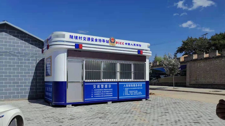 這一款為昆明地區(qū)定制的交通安全勸導(dǎo)站,將作為陡坡村交巡警人員的一個辦公場所,對轄區(qū)內(nèi)交通安全宣傳教育工作,對轄區(qū)駕駛?cè)藛T進行安全教育及提醒,對交通違法行為進行處理,糾正工作,處理一些交通事故等。